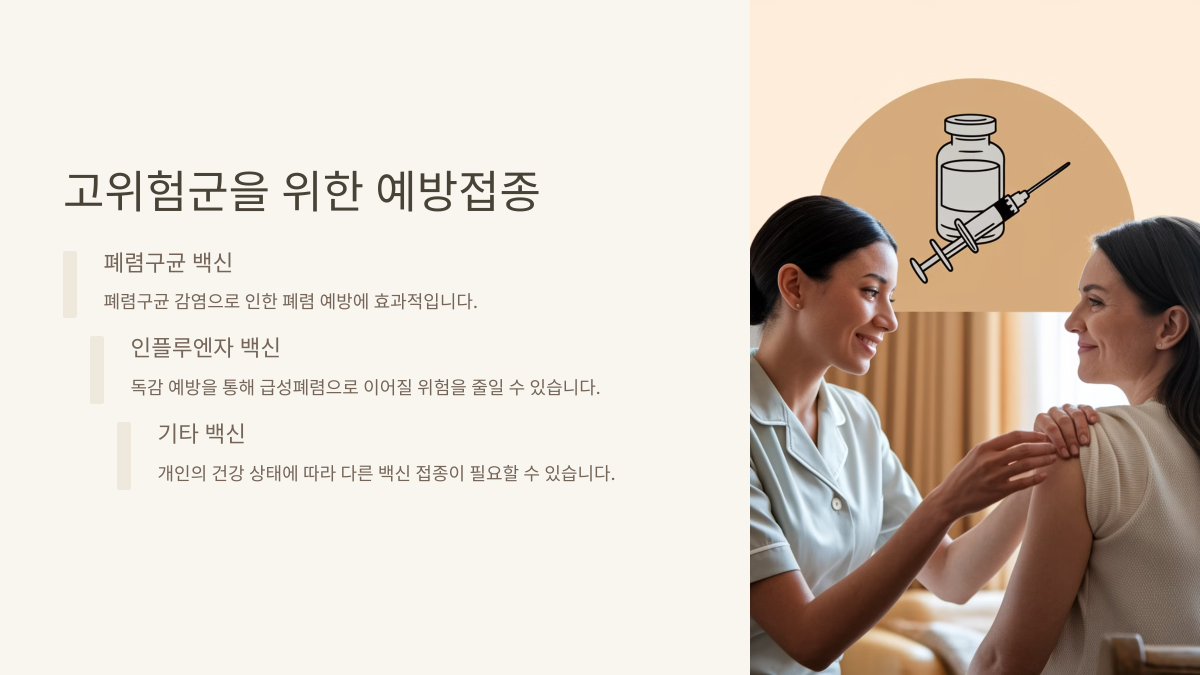 A3. 예방접종(폐렴구균 백신), 손 씻기, 건강한 생활습관이 중요해요.