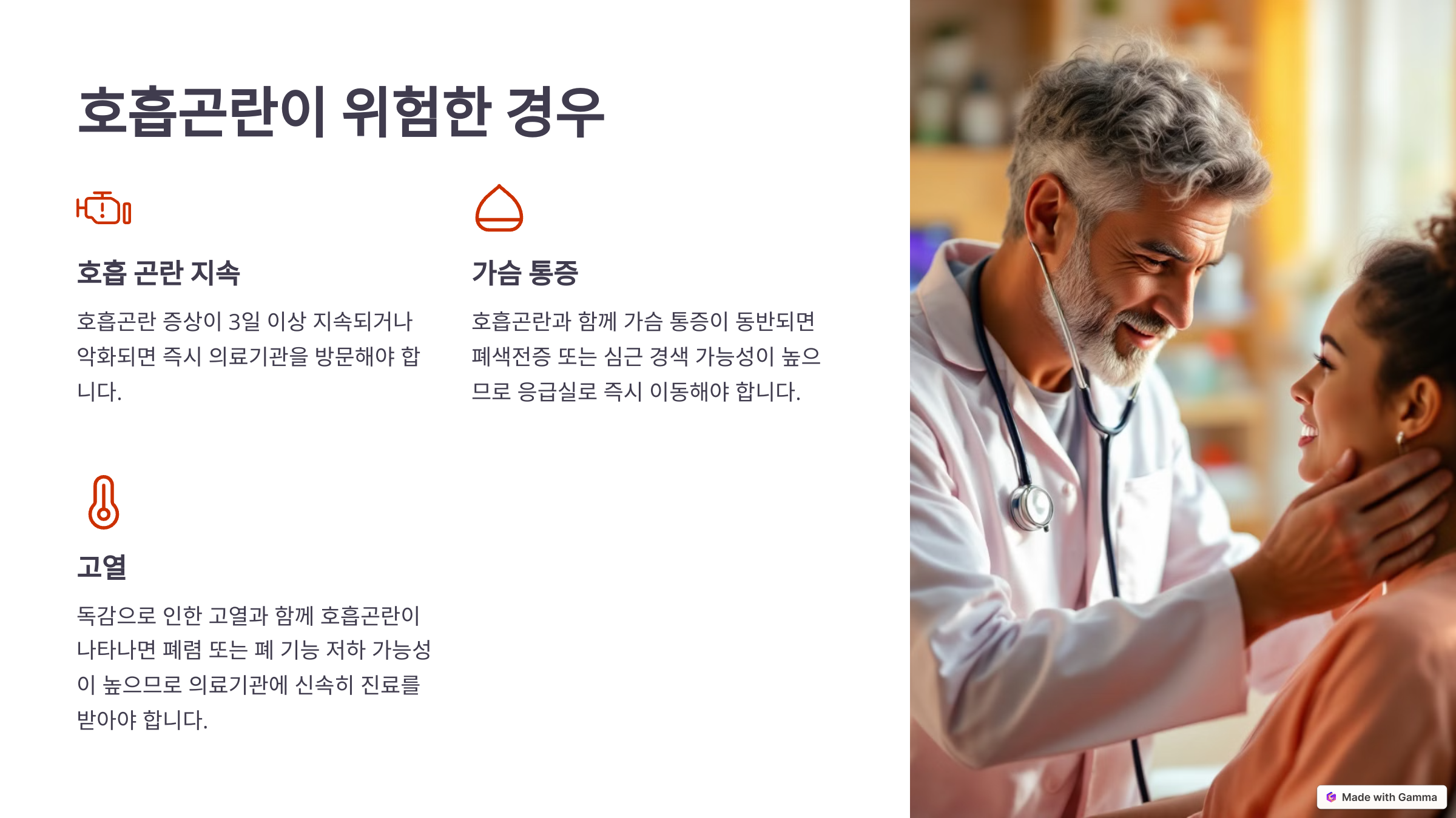 🚨 숨이 너무 가빠져 말하기 어려울 때: 산소 부족으로 의식이 저하될 수 있어 즉각적인 치료가 필요해요.