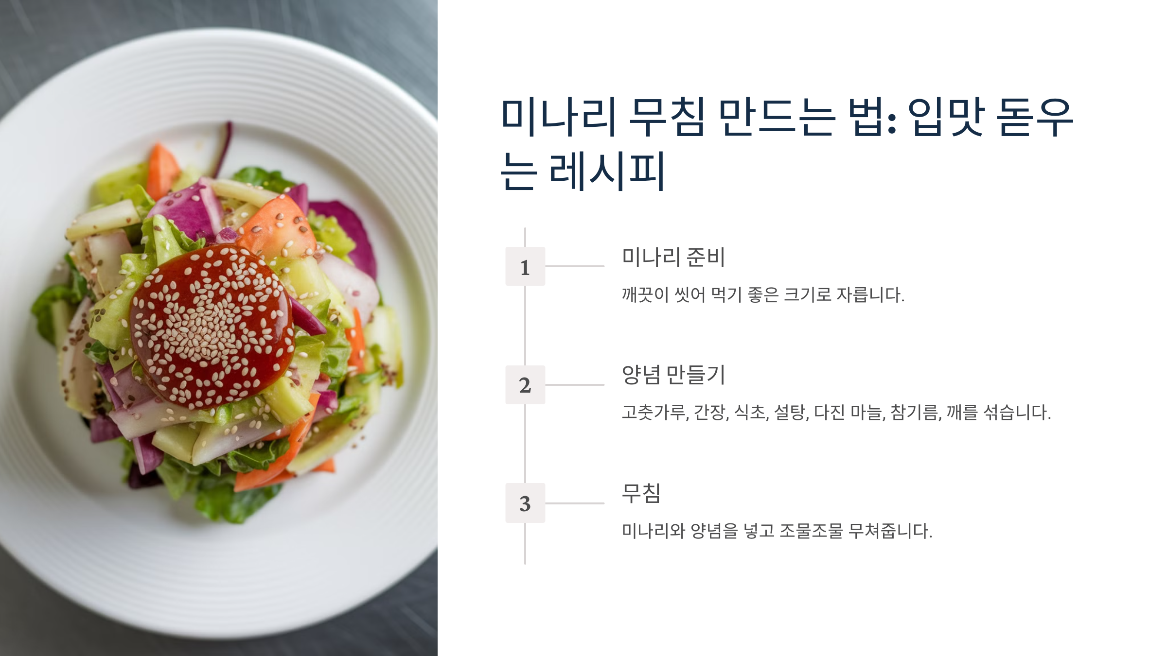 다음 섹션에서는 맛있고 간단한 미나리 무침 레시피를 소개할게요! 🥗