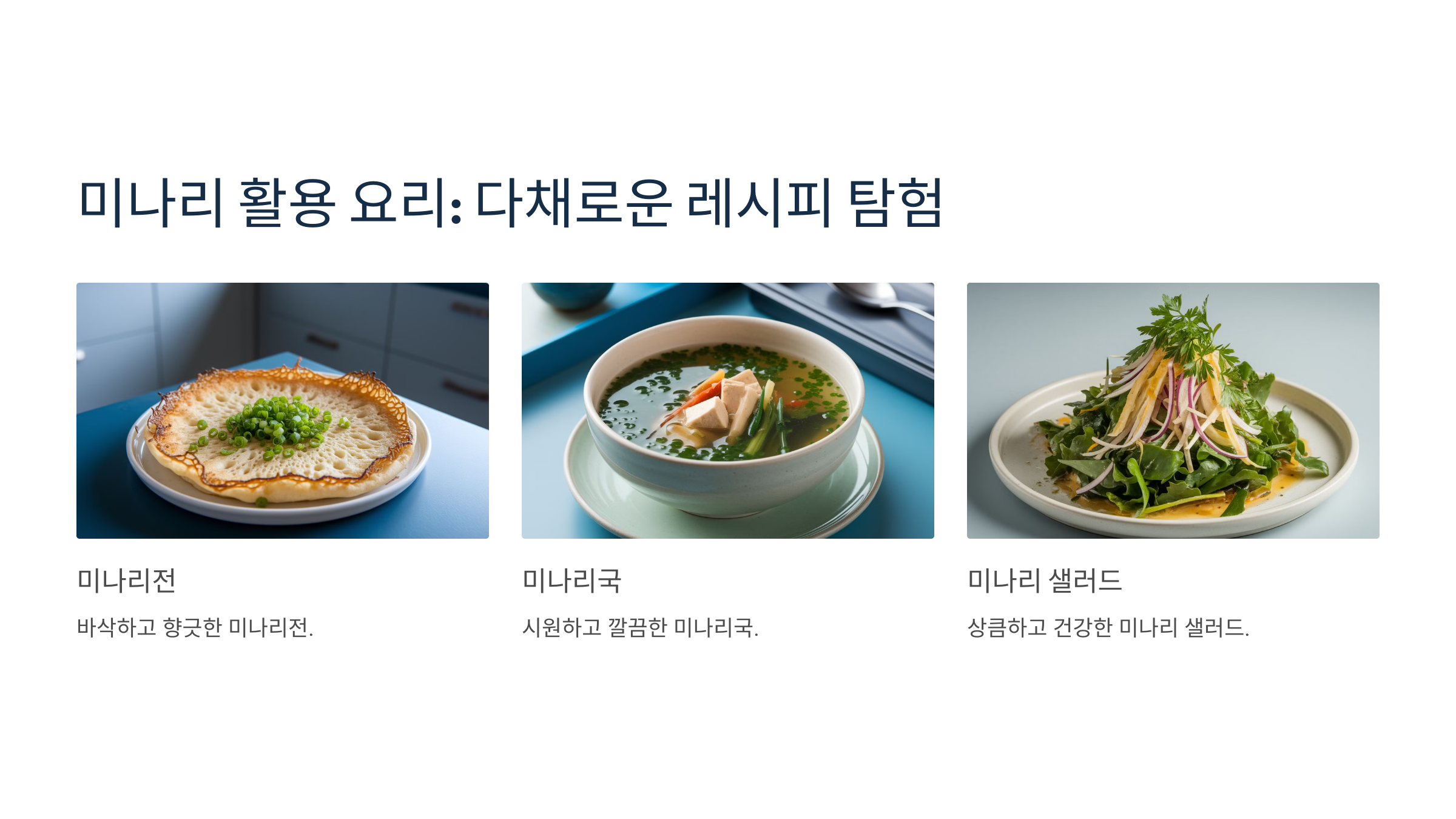 다음 섹션에서는 미나리를 활용한 다양한 요리 방법을 소개할게요! 🍽️